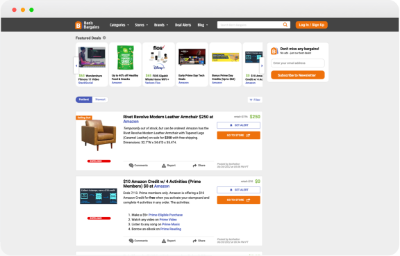- 月均流量约100W+,流量比较稳定,美国老牌促销网站;相比DealNews名气不大,但是性价比较高;