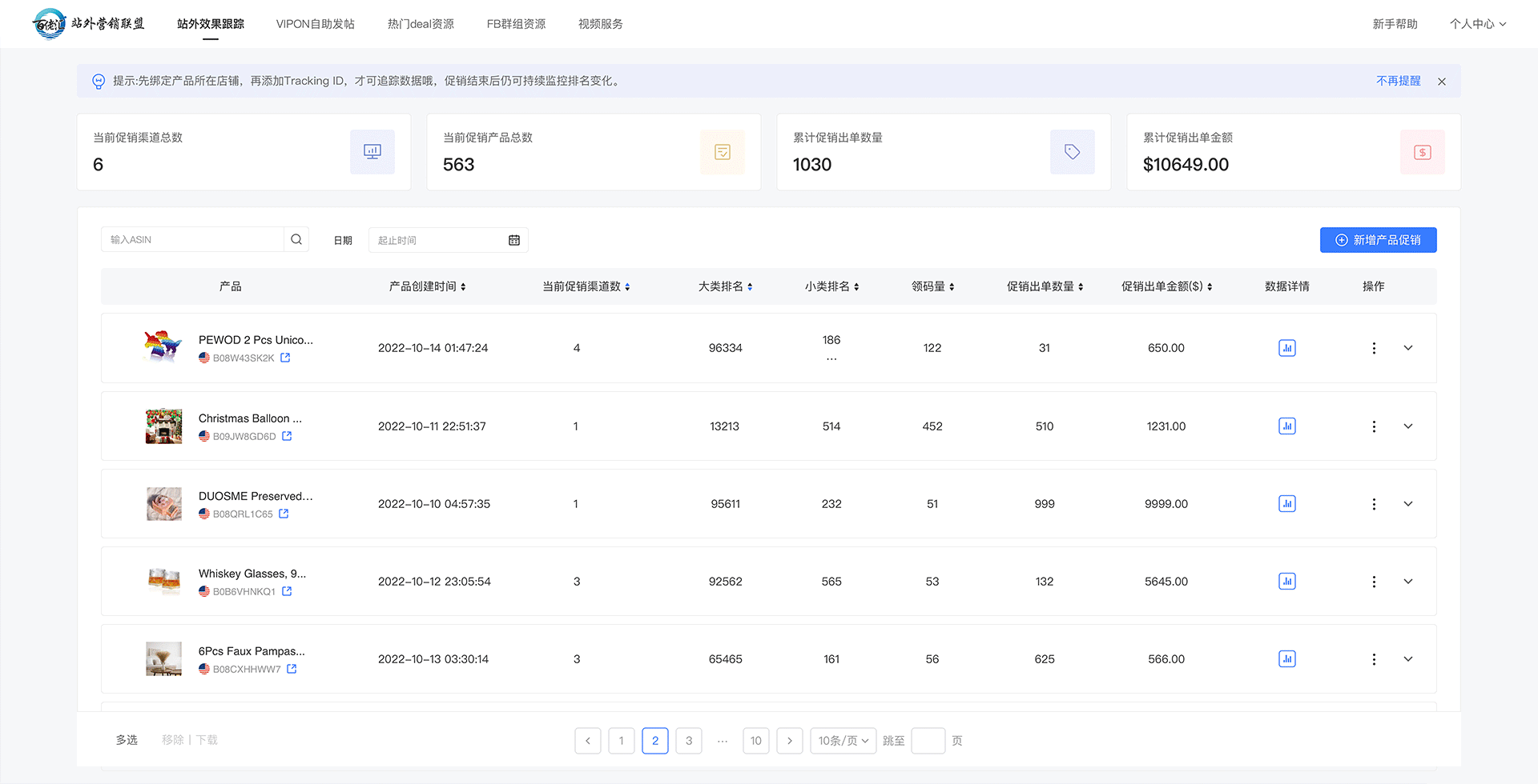 发帖后自动追踪产品促销出单数量及金额,以及排名变化趋势